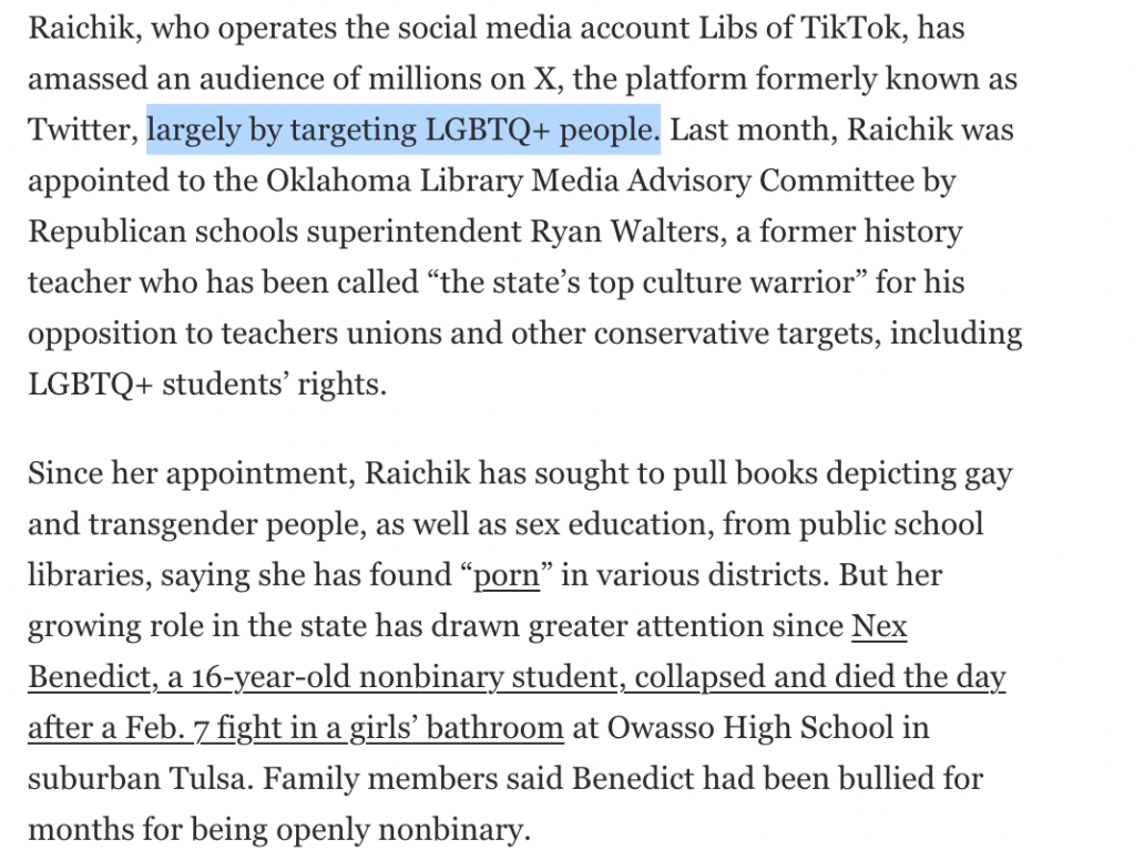 ‘Journalist’ Taylor Lorenz of the Washington Post has repeatedly tried to cancel Chaya Raichik (@libsoftiktok) for exposing the trans agenda, particularly in schools.